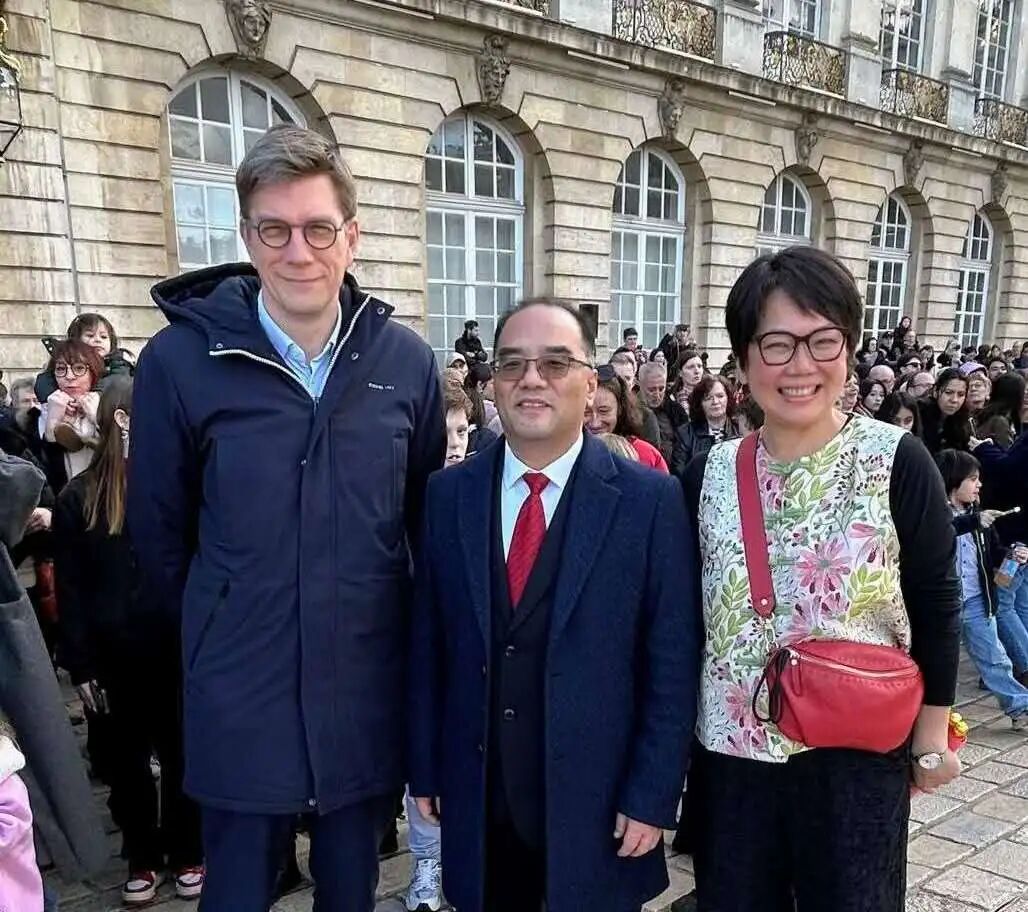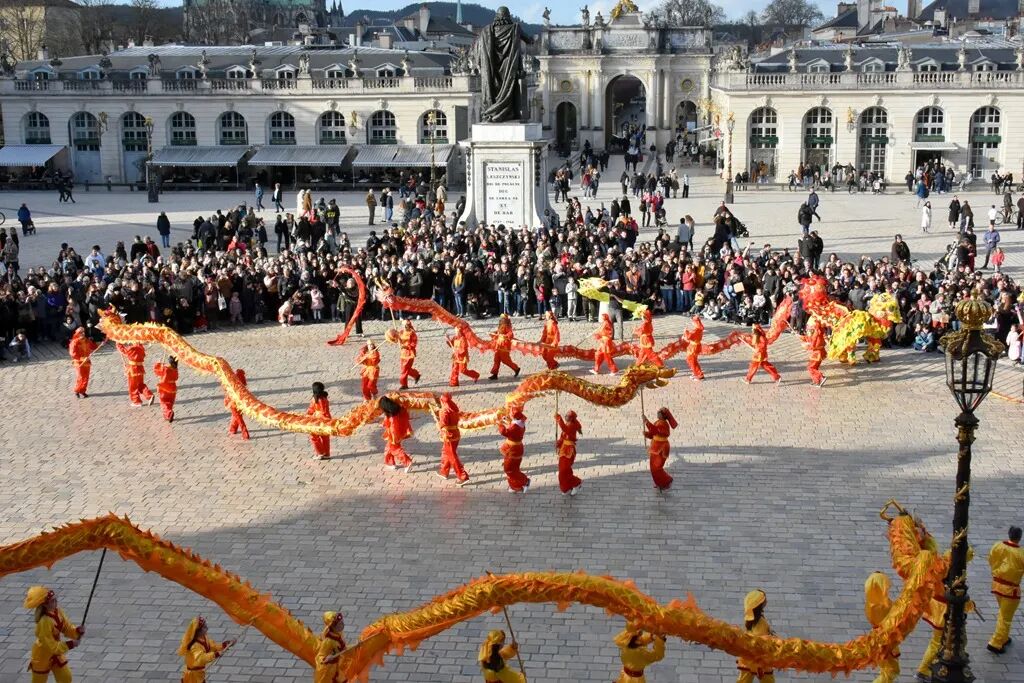 南锡市市政厅内一排排中华文化展台前人头攒动,斯坦利斯广场上锣鼓喧天,舞龙舞狮表演吸引数千人驻足观看,共贺中国新年。